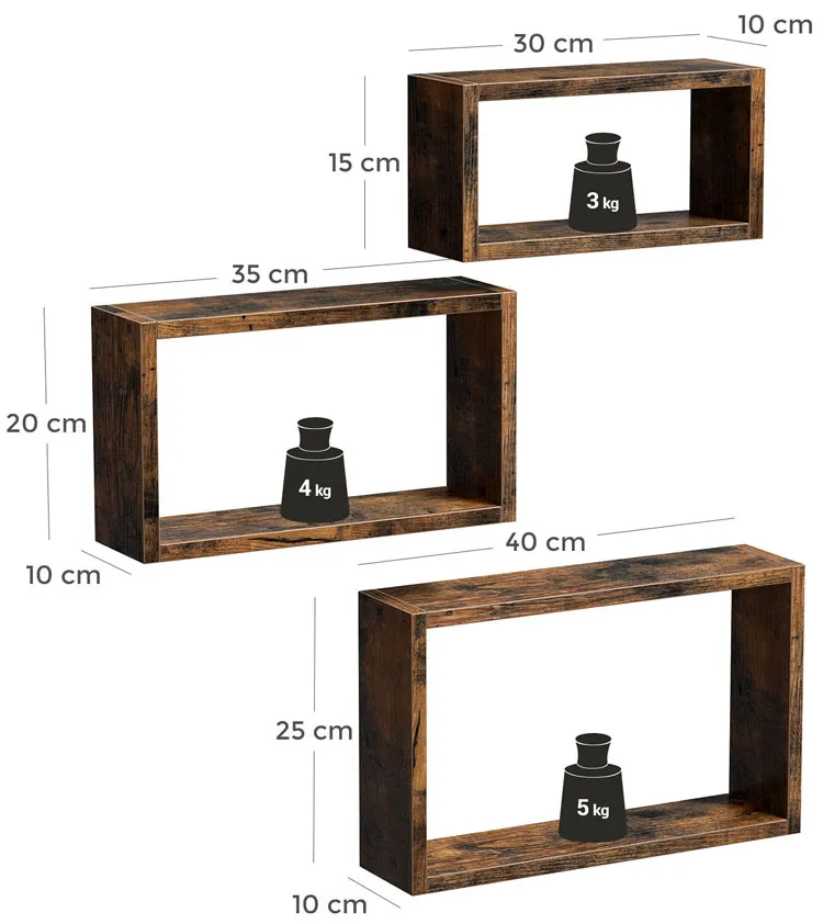 Wymiary średniej półki: 35 x 10 x 20 cm (szerokość x głębokość x wysokość)