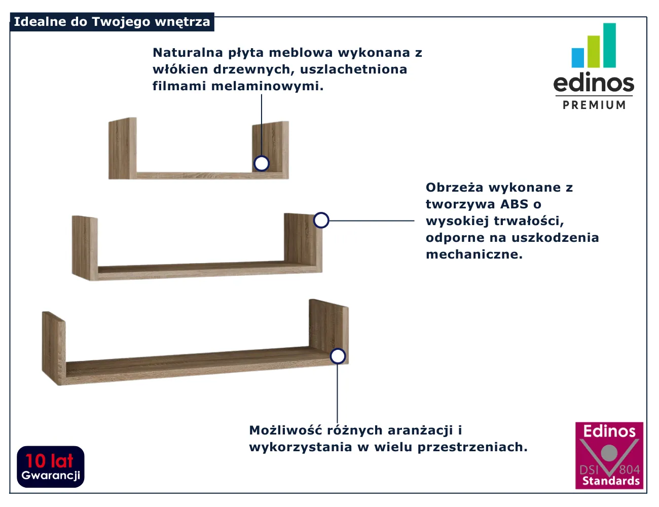 Dotyczy: Biały komplet 3 sztuk półek skandynawskich - Lazar