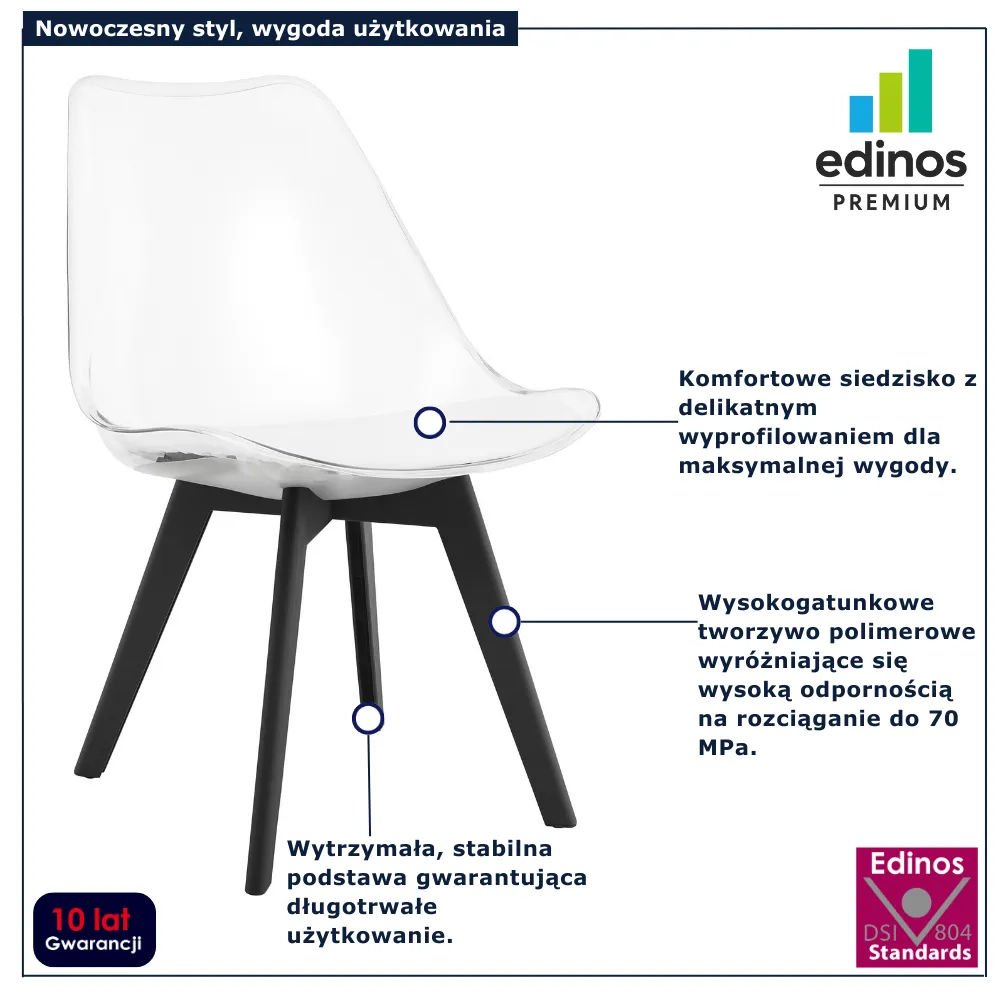 Dotyczy: Komplet czarnych krzeseł kuchennych z czarną podstawą 4 szt. - Ares 4S