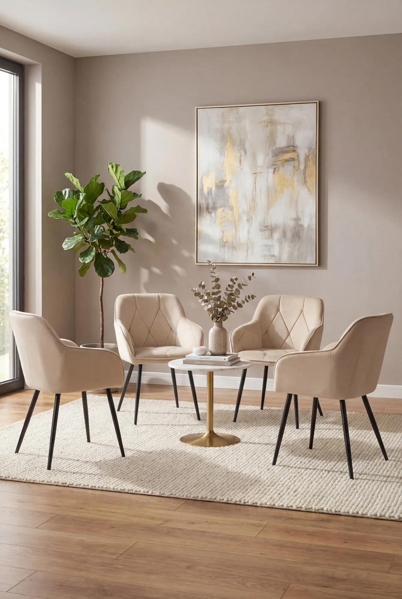 Dotyczy: Zestaw 6 beżowych welurowych krzeseł pikowanych - Lorviano
