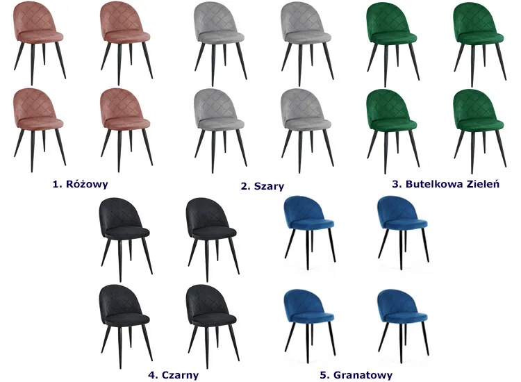 Dotyczy: Zestaw welurowych krzeseł 4 sztuki butelkowa zieleń - Ari 4X