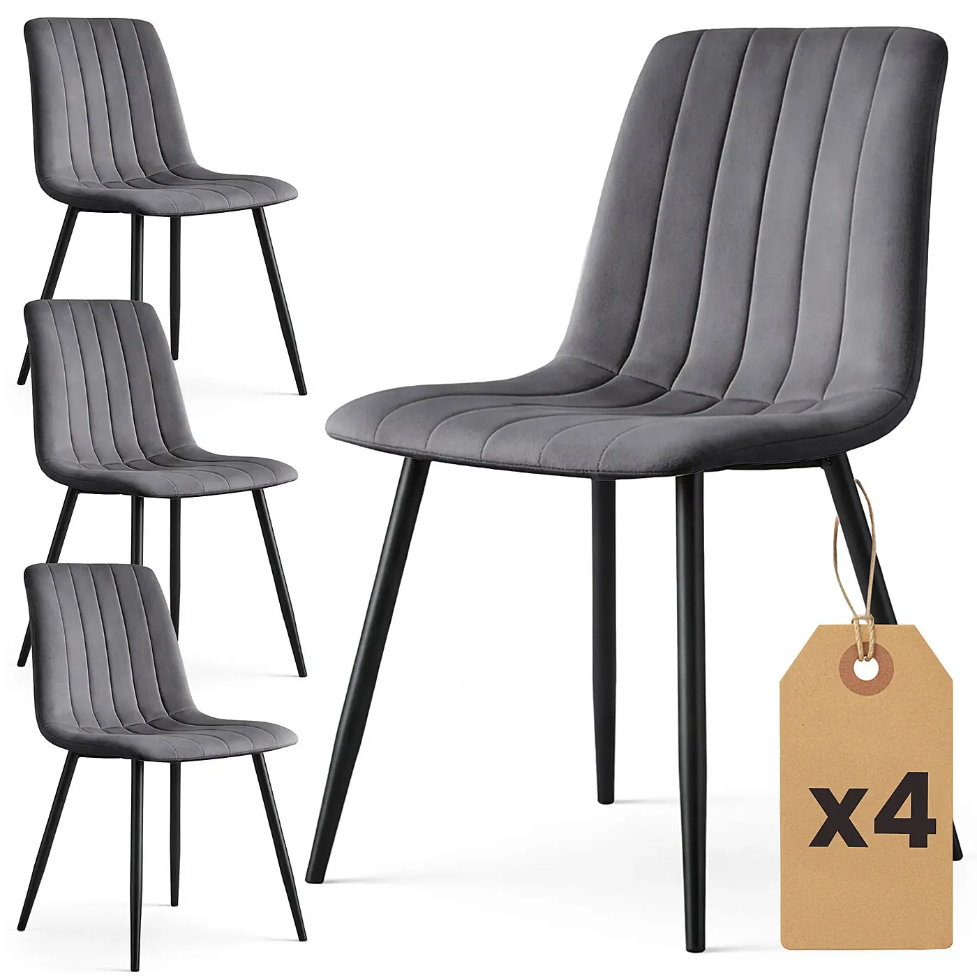 Zestaw 4 grafitowych krzeseł tapicerowanych welurem -Selvaro