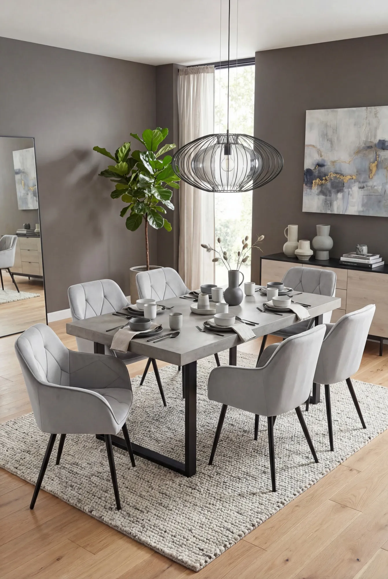 Aranżacja jadalni z szarymi krzesłami Lorviano