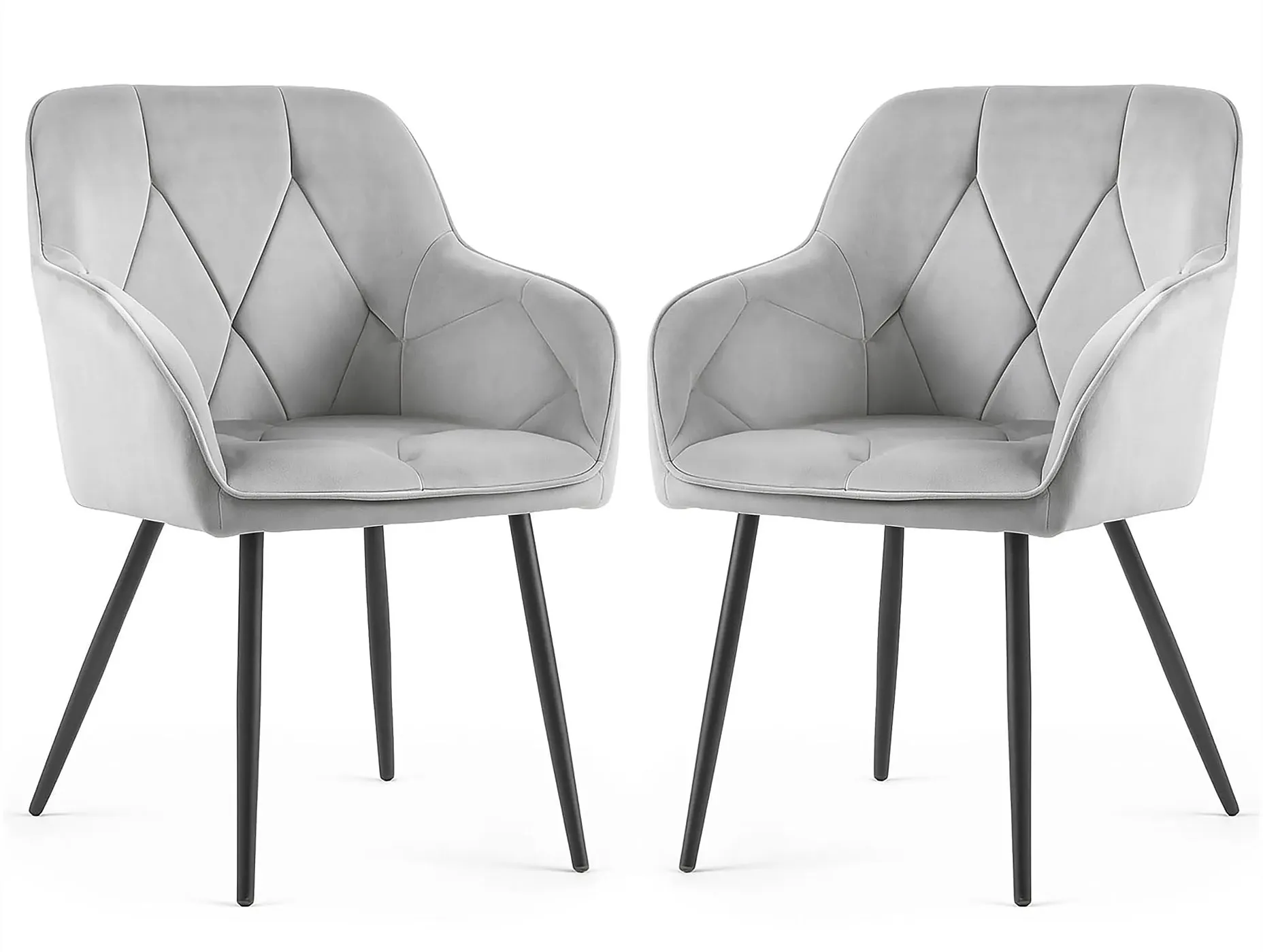 Zestaw 4 jasnoszarych krzeseł welurowych z pikowaniem - Lorviano