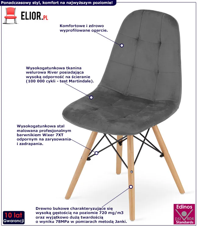 Dotyczy: Komplet czarnych welurowych krzeseł 4 szt. - Mando