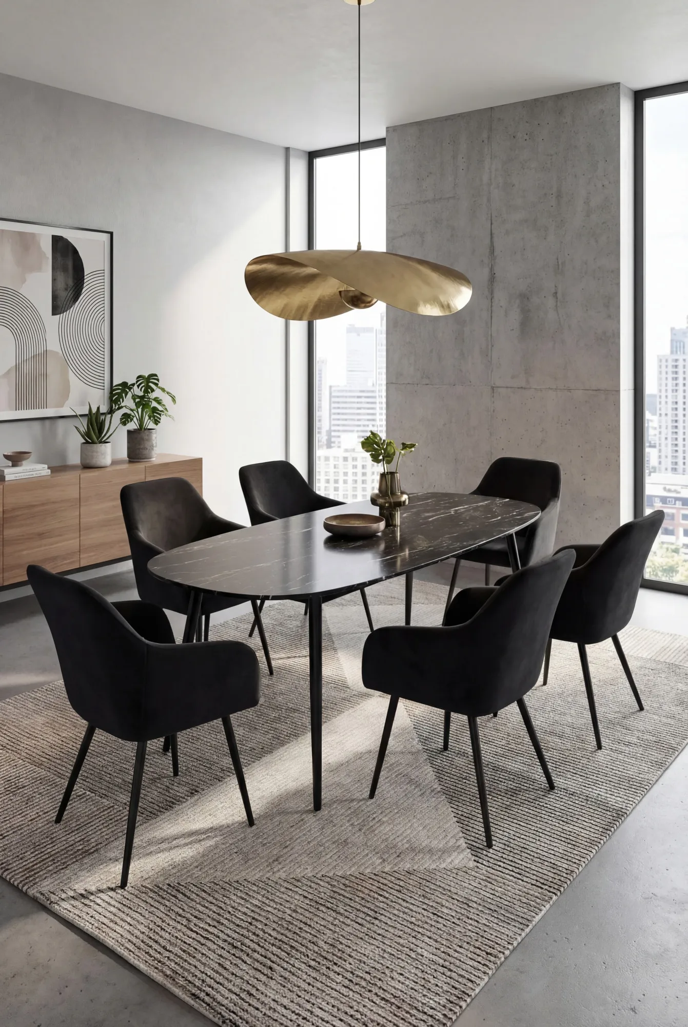 Aranżacja jadalni z czarnymi krzesłami Terviso 2X