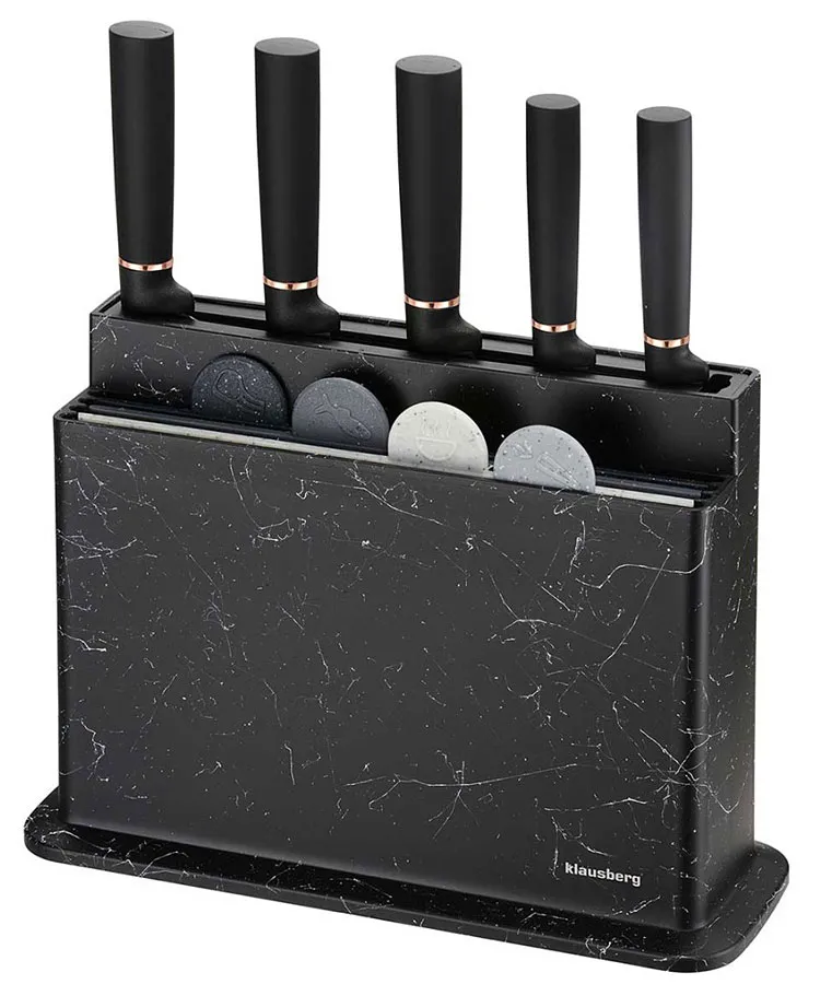 Zestaw 5 noży kuchennych oraz 4 desek do krojenia w stojaku - Ibero 6X