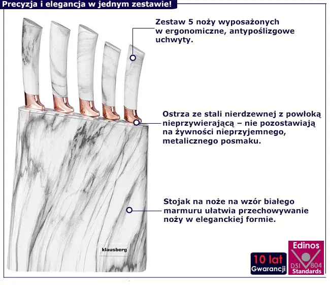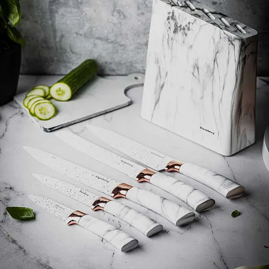 Dotyczy: 5 elementowy zestaw noży kuchennych biały marmur - Ibero 5X