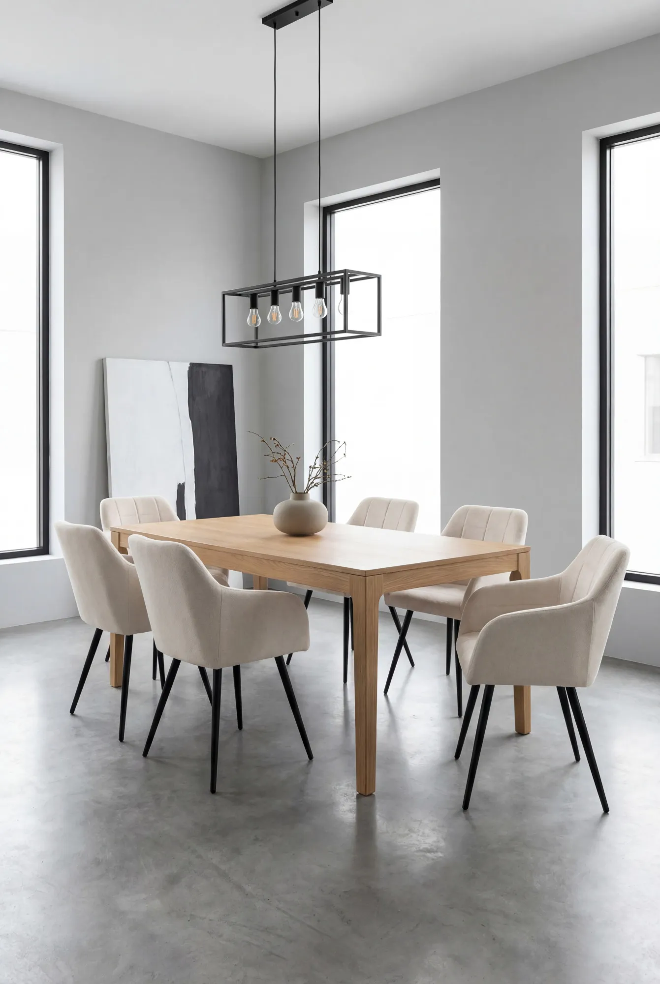 Aranżacja jadalni z beżowymi krzesłami Cormelis 3X
