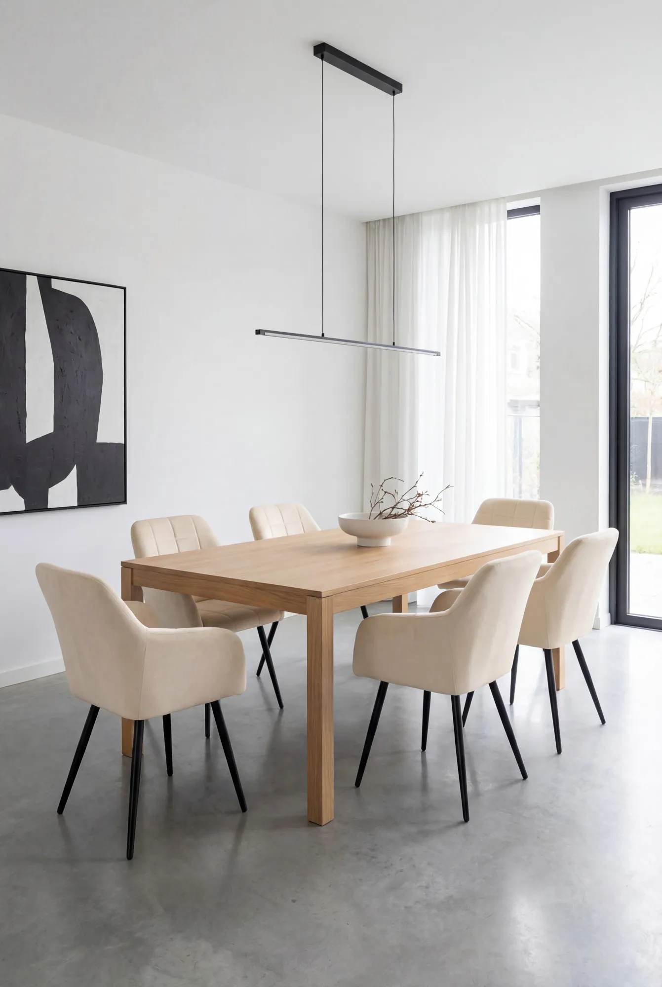Aranżacja jadalni z beżowymi krzesłami Cormelis 4X