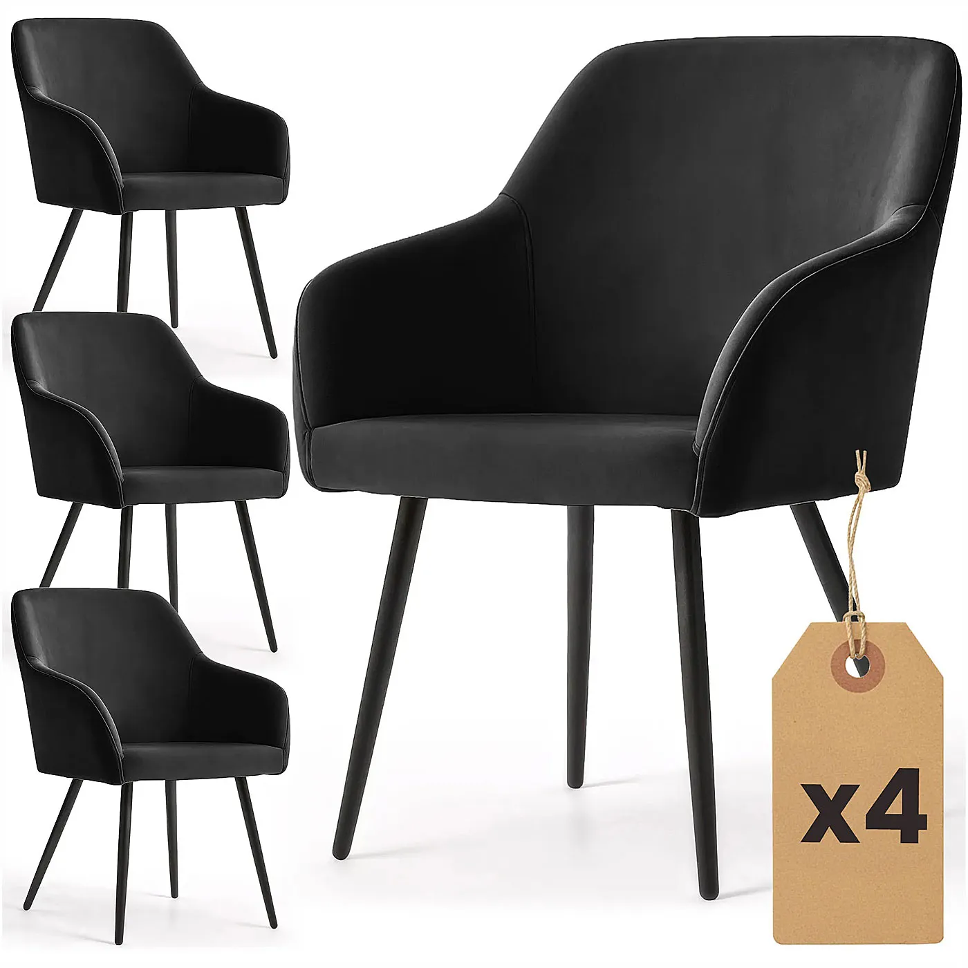 Zestaw 6 krzeseł welurowych na czarnej podstawie - Terviso 2X