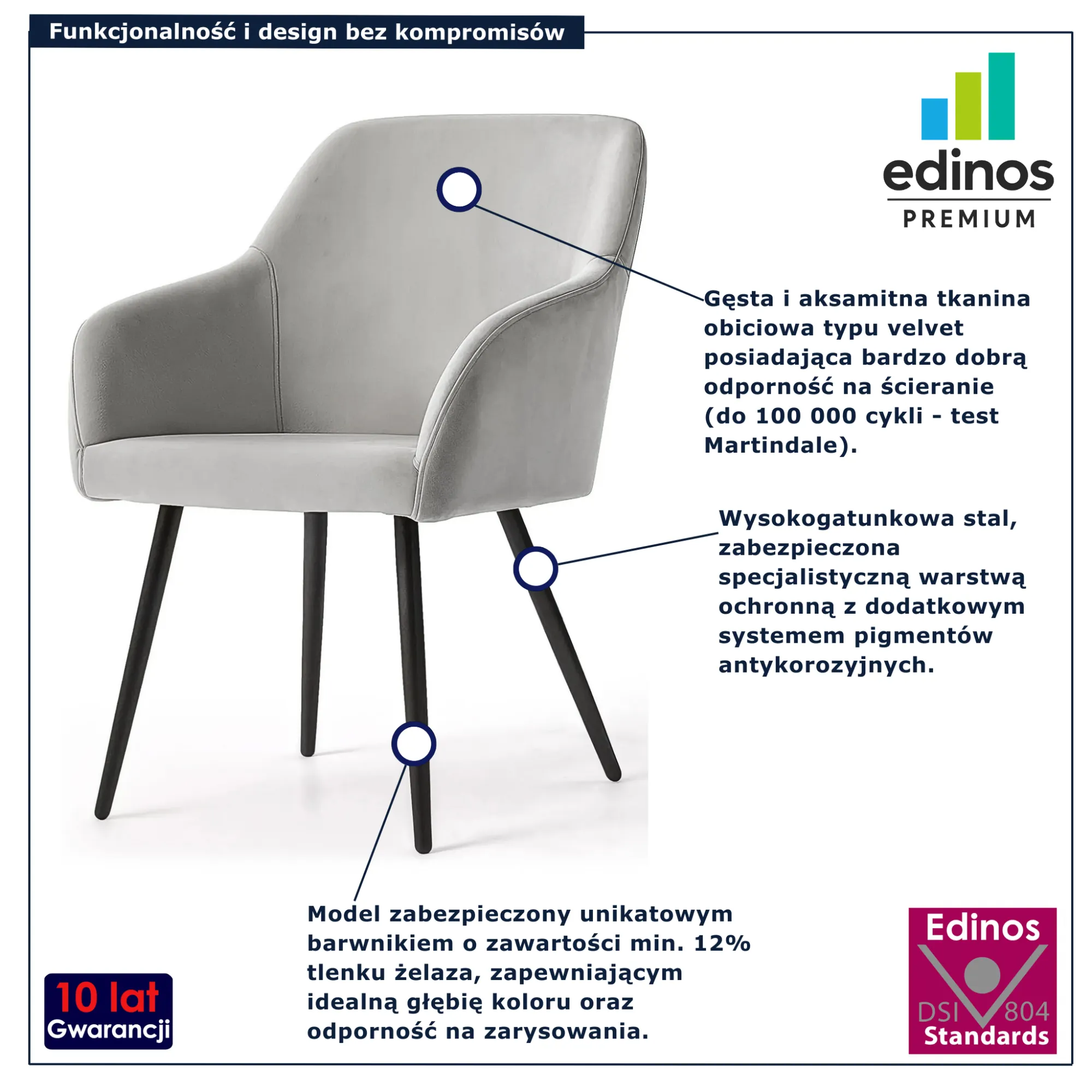 Zestaw krzesel Terviso 2X marki Edinos Premium to połączenie subtelnej elegancji i codziennej wygody, które w naturalny sposób podnosi poziom każdej aranżacji. Ich harmonijnie wyprofilowane oparcie płynnie przechodzi w delikatne podłokietniki, tworząc komfortową, otulającą formę. To model, który zaprasza do siedzenia - zarówno podczas rodzinnych posiłków, jak i długich rozmów przy stole. Minimalistyczna bryła w połączeniu ze smukłymi, metalowymi nogami nadaje mu lekkości wizualnej, a jednocześnie zapewnia stabilność i trwałość konstrukcji. Miękkie wypełnienie z wysokiej jakości pianki sprawia, że komfort jest odczuwalny od pierwszej chwili. Terviso 2X doskonale odnajduje się w przestrzeniach nowoczesnych, modern classic, soft loft czy minimalistycznych - nie dominuje wnętrza, lecz podkreśla jego charakter.