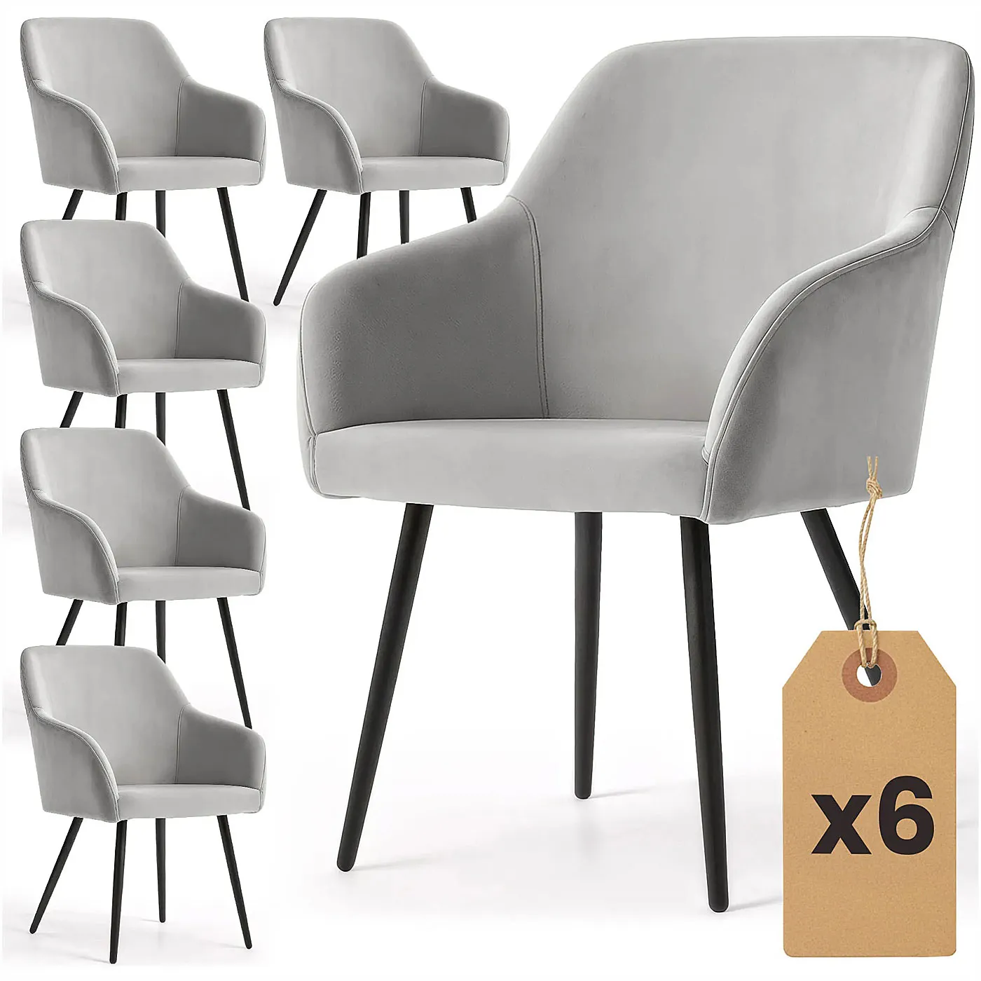 Zestaw 6 szarych krzeseł tapicerowanych welurem - Terviso 2X
