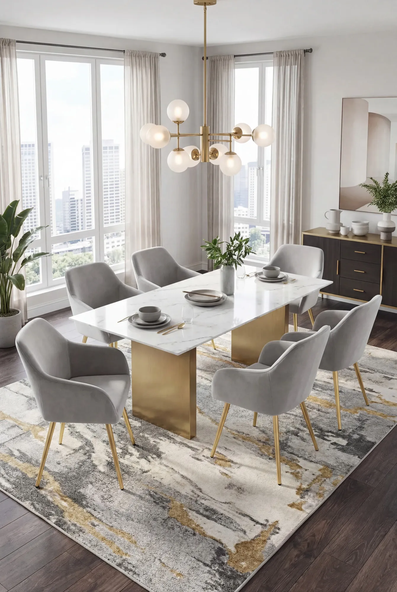 Aranżacja jadalni z szarymi krzesłami Terviso 3X