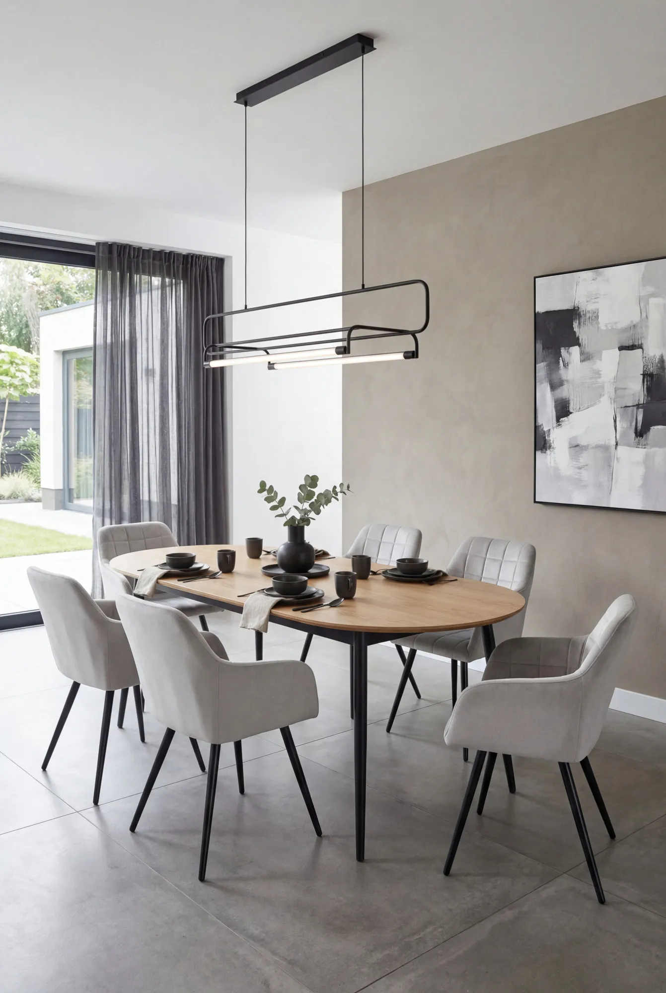 Aranżacja jadalni z szarymi krzesłami Cormelis 4X