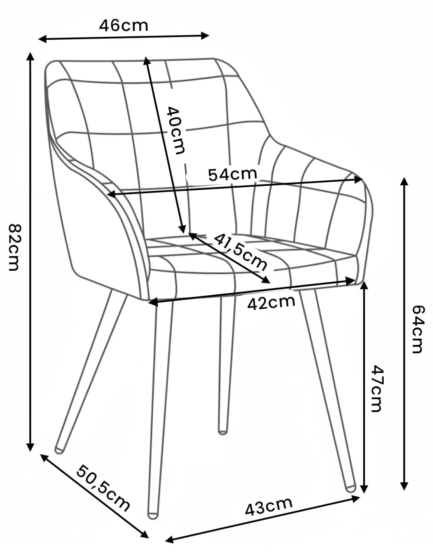 • wysokość 82 cm, głębokość 41,5 cm, szerokość 42 cm.