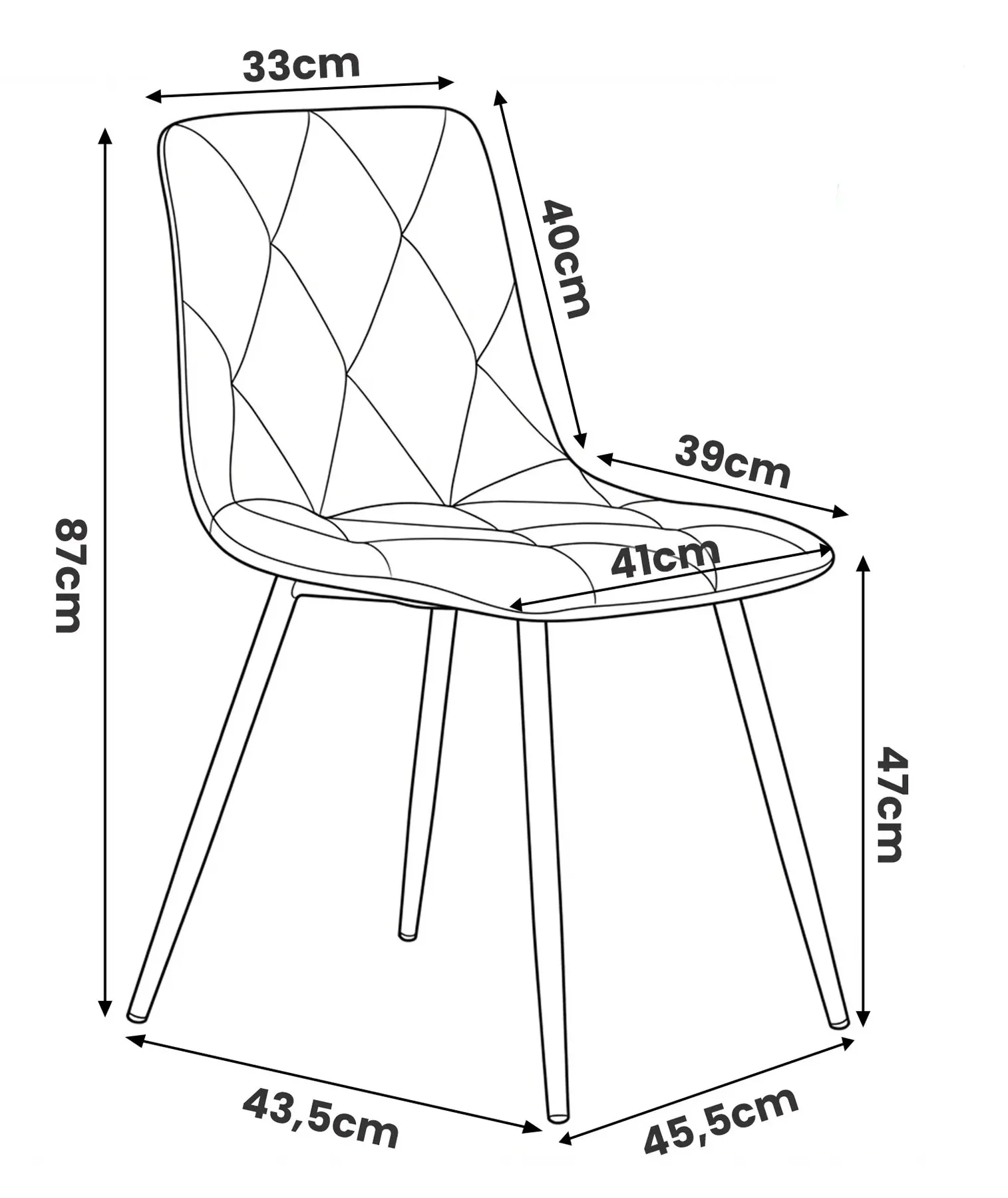 Zestaw 8 krzeseł Lumario marki Edinos Premium to połączenie subtelnej elegancji i nowoczesnej lekkości, które od razu przyciąga wzrok. Charakterystyczne pikowanie w romby nadają im wyrafinowanego, ponadczasowego charakteru, a jednocześnie sprawiają, że wnętrze zyskuje głębię. To model, który wygląda stylowo, ale nie jest przesadzony - ma w sobie dokładnie tyle elegancji, ile potrzeba. Miękka, welurowa tapicerka sprawia, że krzesło nie tylko świetnie się prezentuje, ale jest również wyjątkowo przyjemne w codziennym użytkowaniu. Wyprofilowane oparcie i komfortowe siedzisko zapewniają wygodę zarówno podczas rodzinnych posiłków, pracy przy biurku, jak i długich rozmów przy stole. Smukłe, metalowe nogi dodają konstrukcji lekkości i nowoczesnego charakteru, a przy tym gwarantują stabilność i trwałość. Lumario doskonale odnajdzie się w aranżacjach modern classic, nowoczesnych oraz modern glamour, ale dzięki swojej uniwersalnej formie z łatwością dopasuje się także do innych stylistyk.