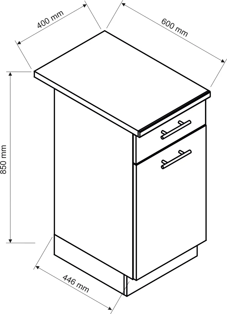 • Korpusy, fronty oraz cokół z wytrzymałej 16 mm laminowanej płyty meblowej.