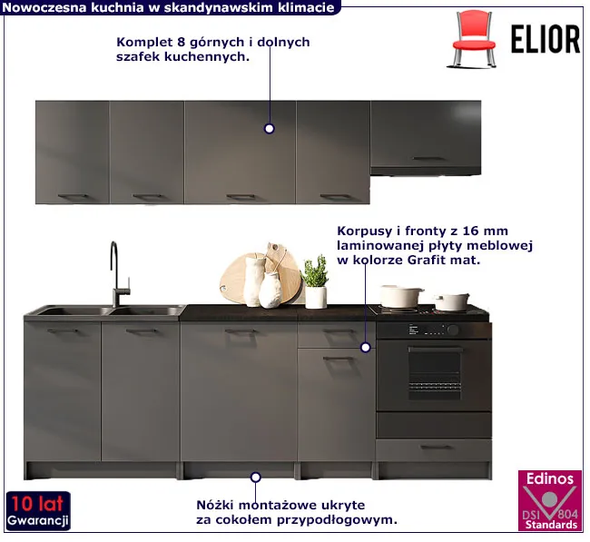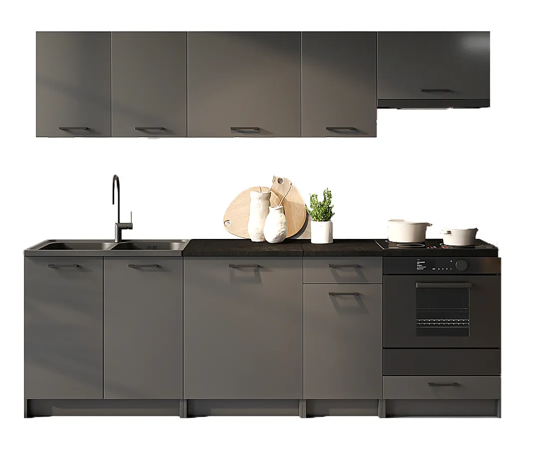 Zestaw 8 mebli do kuchni 240 cm grafit mat - Lanter 6X