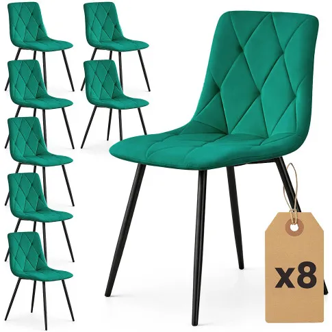 Zestaw 8 zielonych welurowych krzeseł pikowanych - Lumario
