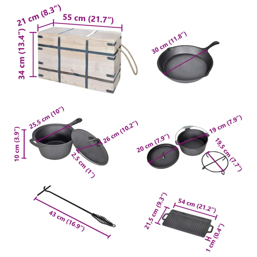 Zestaw 9 naczyń żeliwnych do grillowania - Vana 9X
