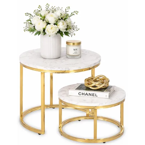 Zestaw biało-złotych stolików kawowych glamour - Siva