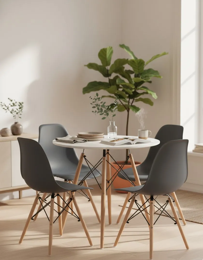 • Kompletne Rozwiązanie: Zestaw składa się ze stołu i krzeseł, co pozwala na utrzymanie spójności stylistycznej i funkcjonalnej.