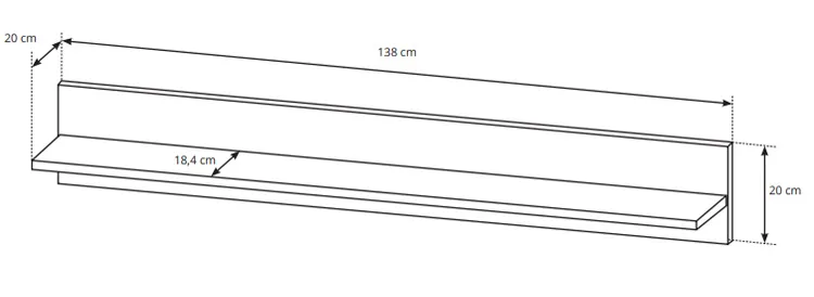 • Półka ścienna: wysokość: 20 cm, szerokość: 138 cm, głębokość: 20 cm.
