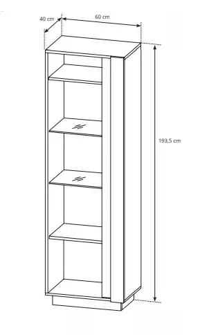 • Witryna: wysokość: 193,5 cm, szerokość: 60 cm, głębokość: 40 cm