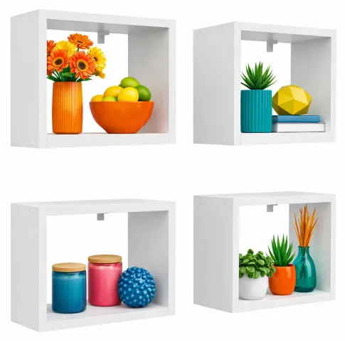 Dotyczy: Komplet 4 kwadratowych półek w kolorze buk - Sevios