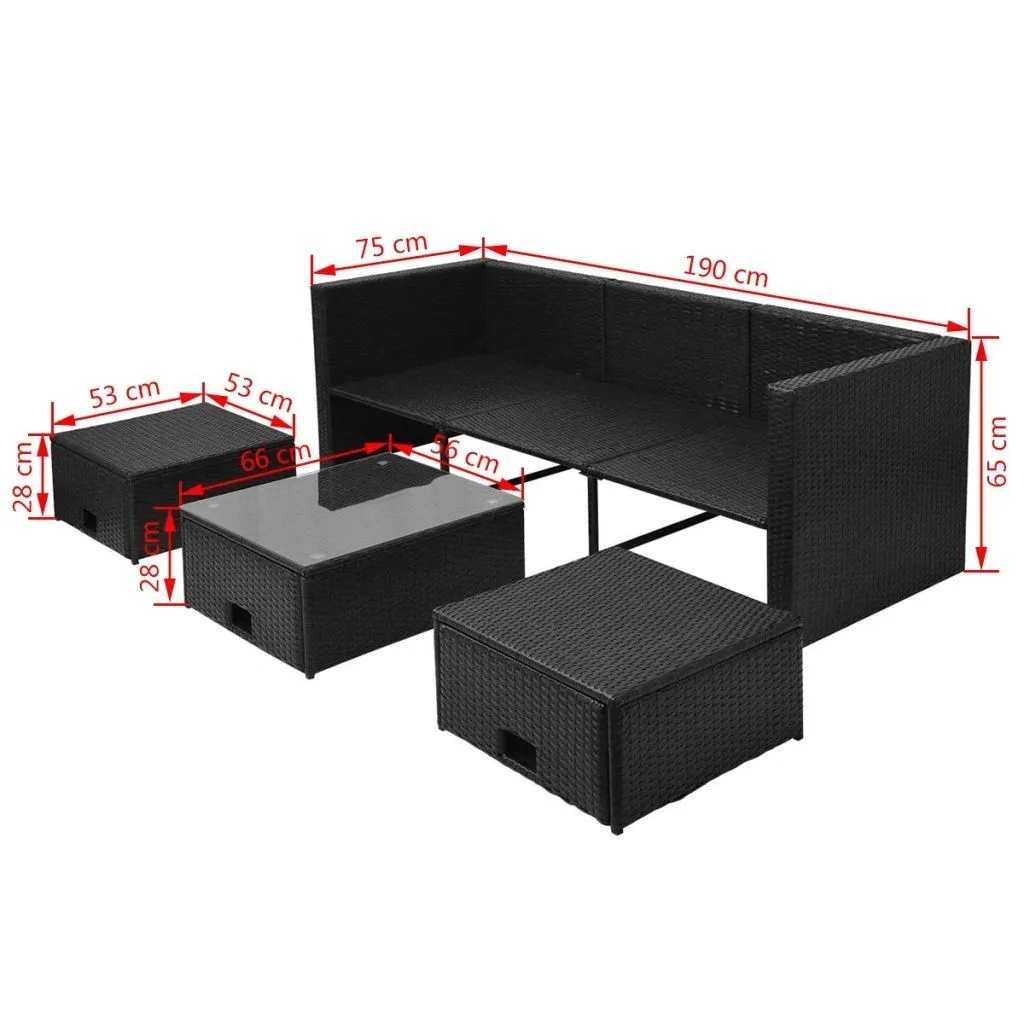 Jesteś na tropie funkcjonalnych mebli do ogrodu? Dotychczasowe oferty wydawały Ci się oferować raczej kicz, niż godne zaufania produkty? Wypróbuj zestaw czarnych mebli ogrodowych Galon, a zyskasz wyposażenie na długie lata! Na ten komplet składa się 3-osobowa sofa, stół oraz dwie pufy. Aby zapewnić Ci odpowiedni komfort użytkowania, do zestawu załączono również osiem wygodnych poduszek o kremowym kolorze. Przekonaj się sam dlaczego to Galon jest wyborem właśnie dla Ciebie!