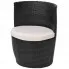 - Materiał: malowana proszkowo stal o antykorozyjnej powierzchni, odporny na wpływ czynników atmosferycznych polirattan, blat z nierysującego się szkła, poszewki z poliestru.