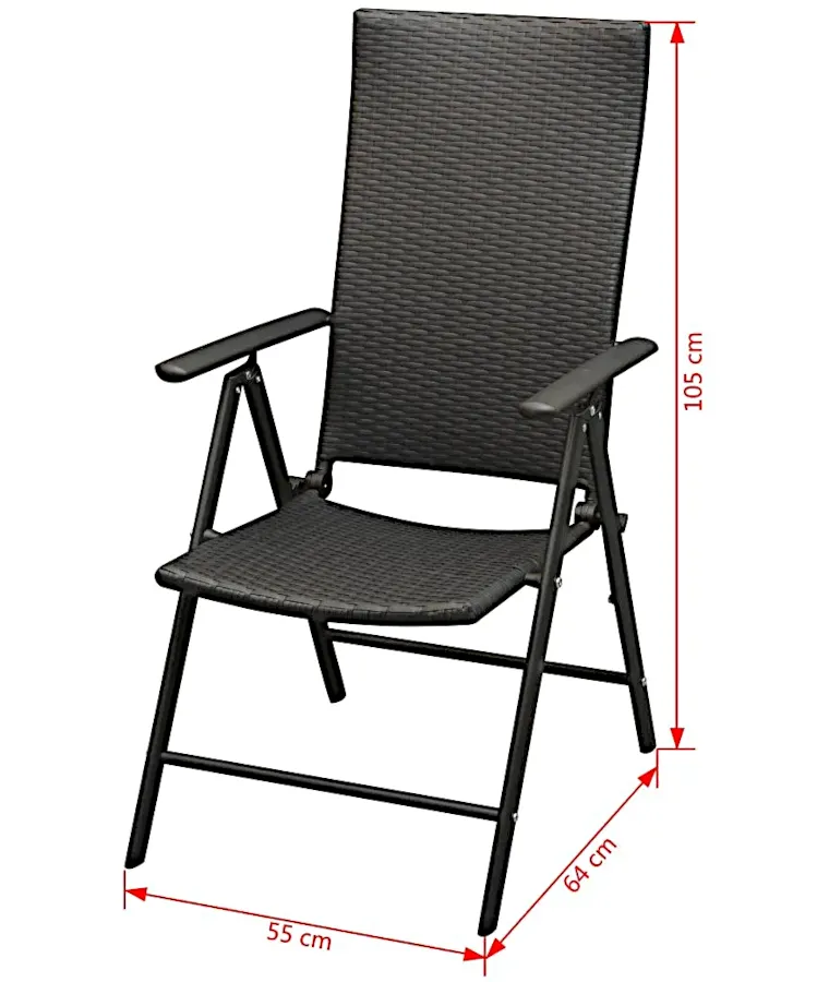 Zestaw czarnych składanych krzeseł ogrodowych - Benusio