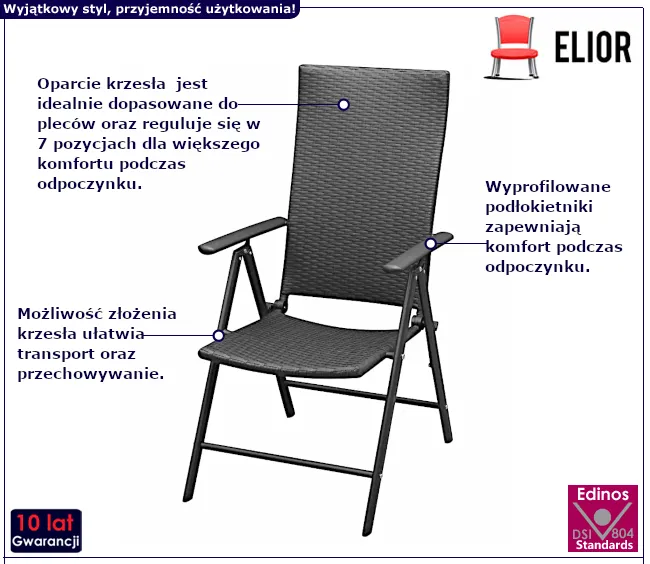 • Kolor: czarny. W naszej ofercie posiadamy także inne krzesła do ogrodu.