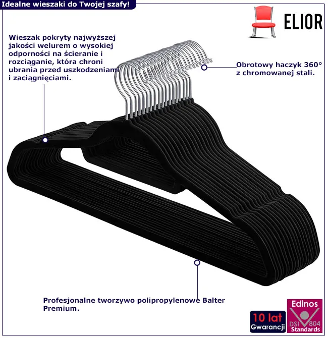 Dotyczy: Czarny komplet wieszaków welurowych do szafy 50 szt - Saba 4X