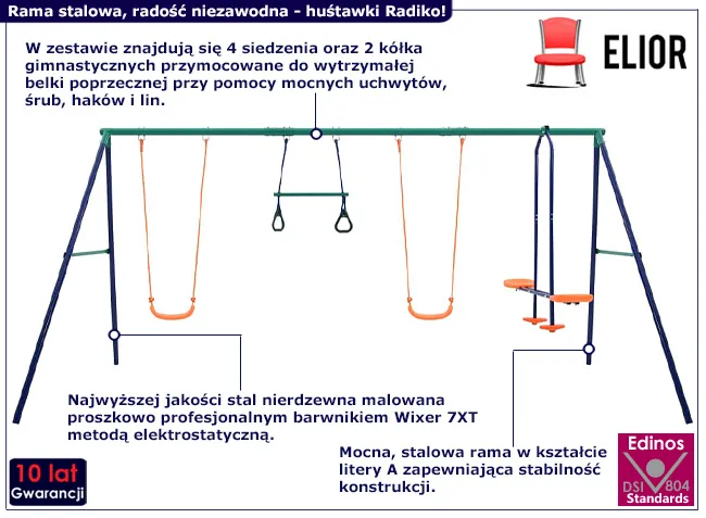 • Kolor: pomarańczowy. Kliknij w link i sprawdź także inne huśtawki ogrodowe w sklepie Edinos.pl. Stwórz swóją praktyczną przestrzeń.