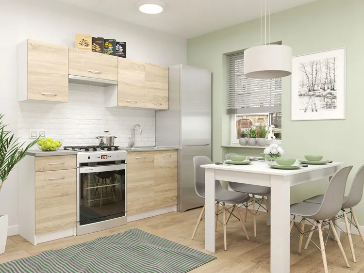Dotyczy: Prostokątny stół dąb sonoma + 4 białe krzesła - Cinar