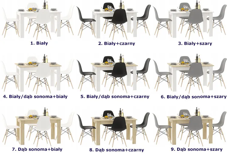 Dotyczy: Biały skandynawski stół z 4 czarnymi krzesłami - Cinar