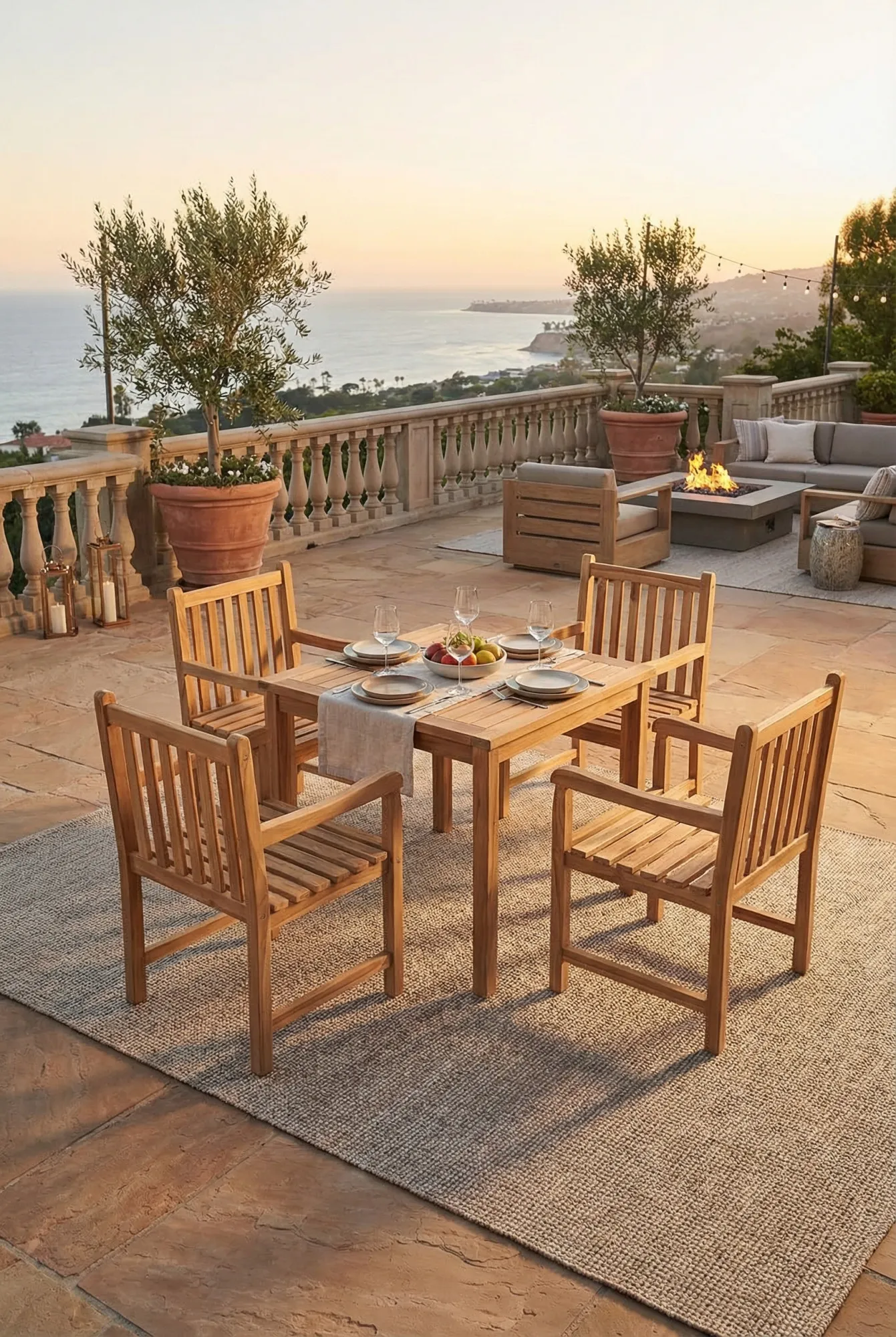 Meble te to doskonały wybór do naszego ogrodu. Uwielbiamy jego rustykalny wygląd i ciepły odcień teku. Meble są dobrze wykonane i bardzo wygodne. Idealne na letnie wieczory spędzone na świeżym powietrzu!