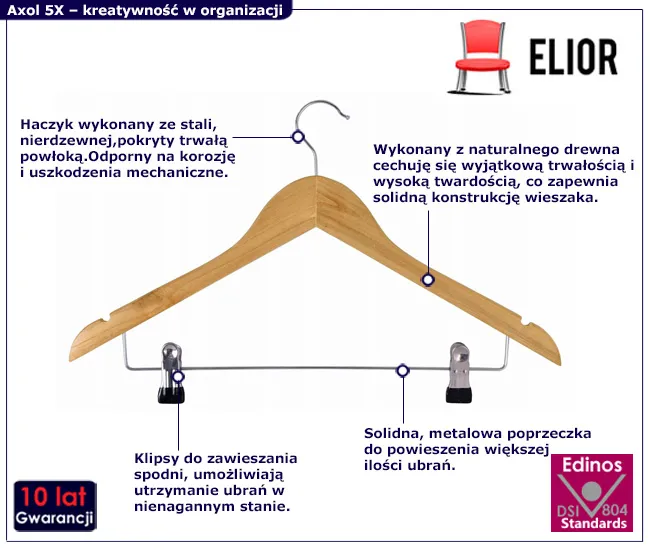 Dotyczy: Komplet drewnianych wieszaków na ubrania 5szt - Lopi 4X