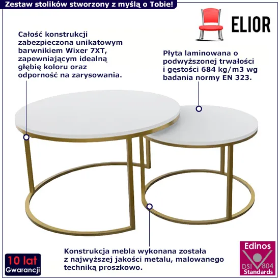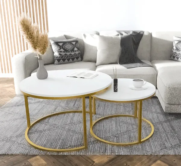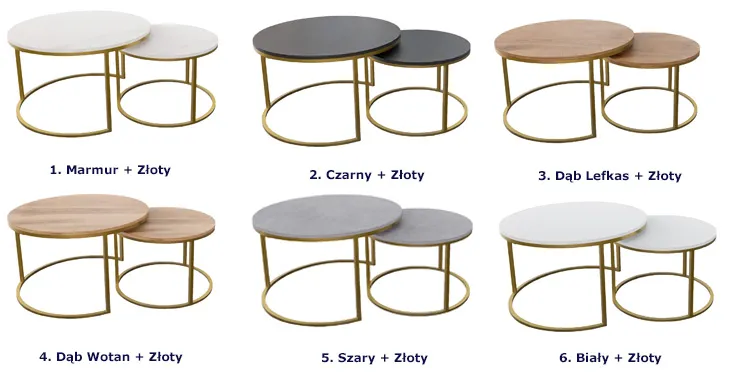 Dotyczy: Zestaw dwóch stolików kawowych w stylu glamur marmur + złoty - Satell 4X