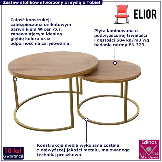 Dotyczy: Stoliki kawowe 2w1 do salonu dąb wotan + złoty - Satell 4X