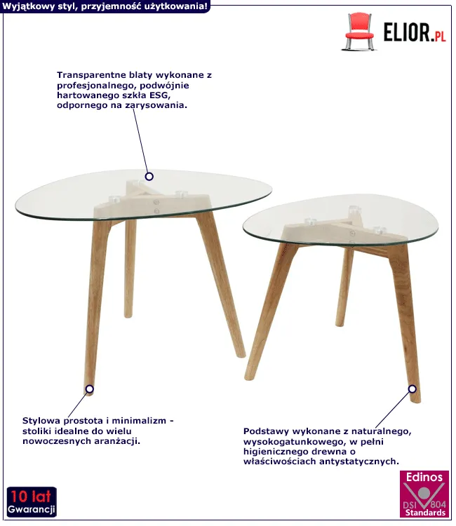 - Modna kolorystyka: transparentny, naturalny. Kliknij w link i sprawdź także inne zestawy stolików w sklepie Edinos.pl. Stwórz swój praktyczny zestaw mebli.