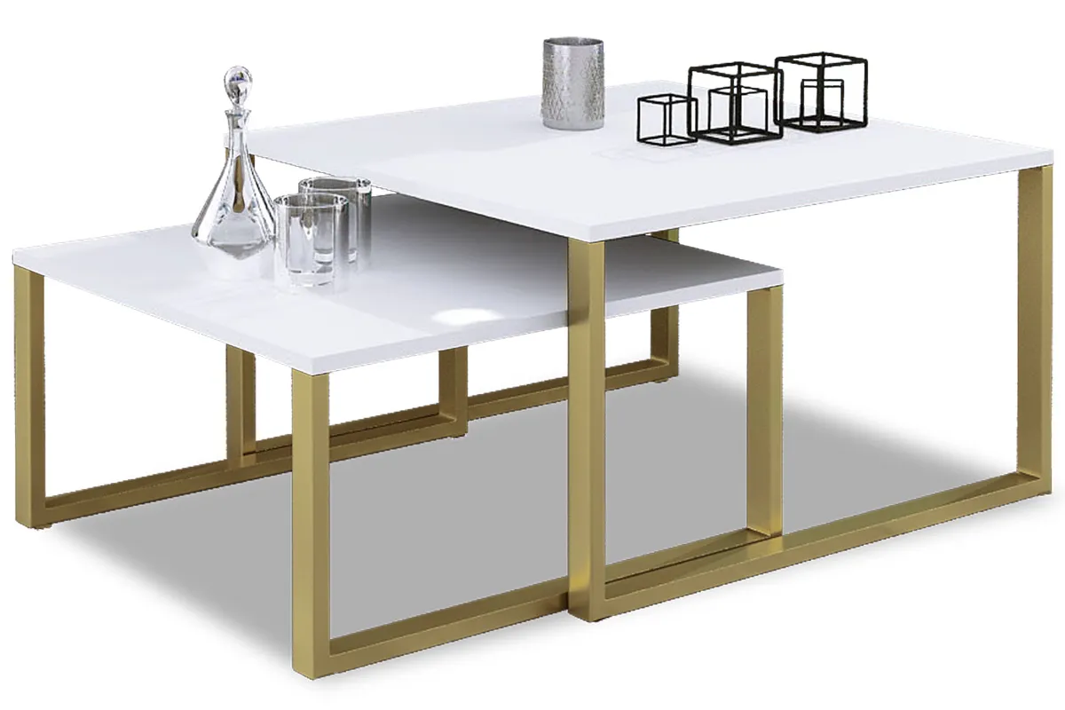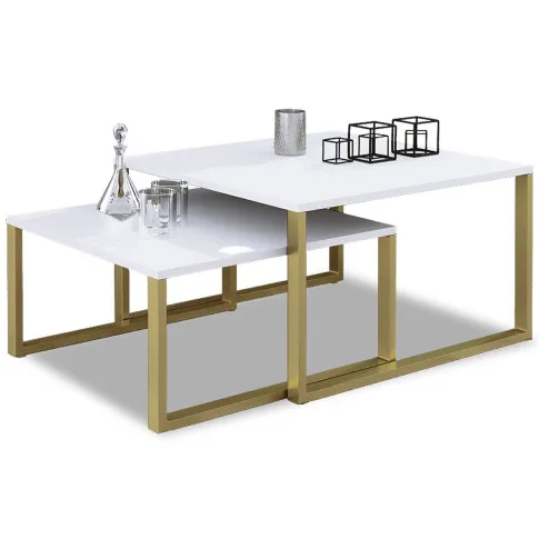 Zestaw dwóch wsuwanych stolików kawowych biały+ złoty - Luil 3X
