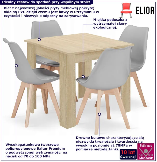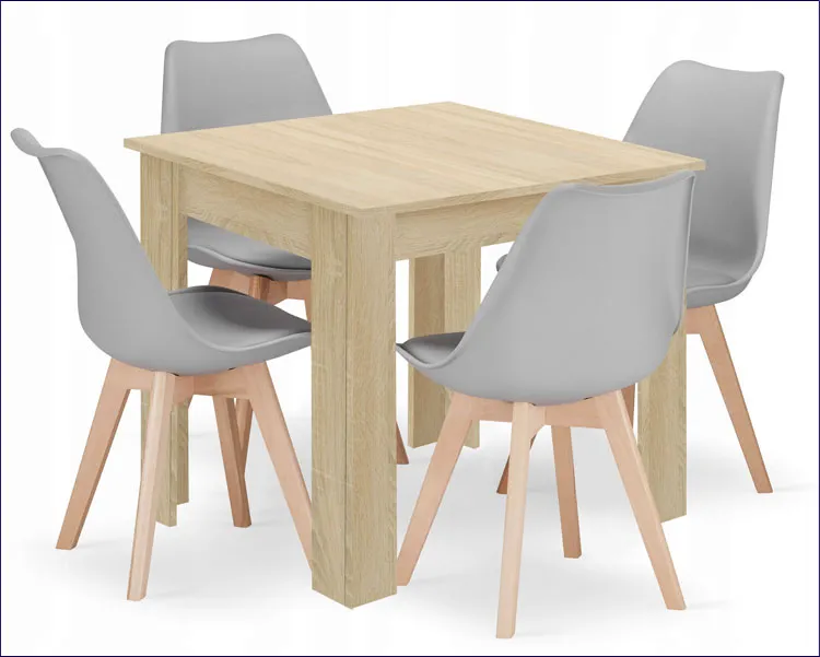 Dotyczy: Kwadratowy stół biały + dąb sonoma z czarnymi krzesłami 4 szt - Camino 3X