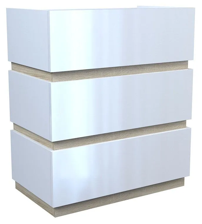 - Kolor: Fronty w kolorze biały połysk, listwy środkowe - dąb sonoma.