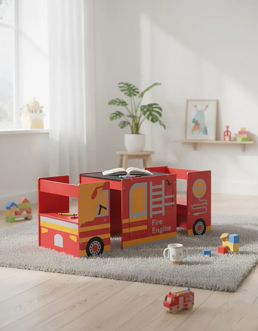 Zestaw mebli dziecięcych z wozem strażackim - Ruffe