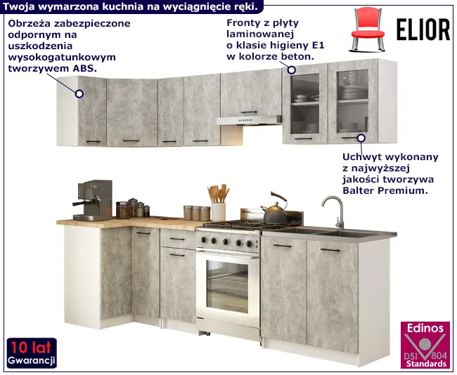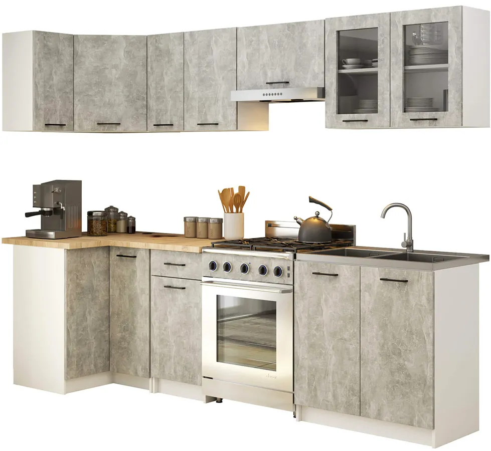 Zestaw mebli kuchennych narożnych beton 300 cm - Poli