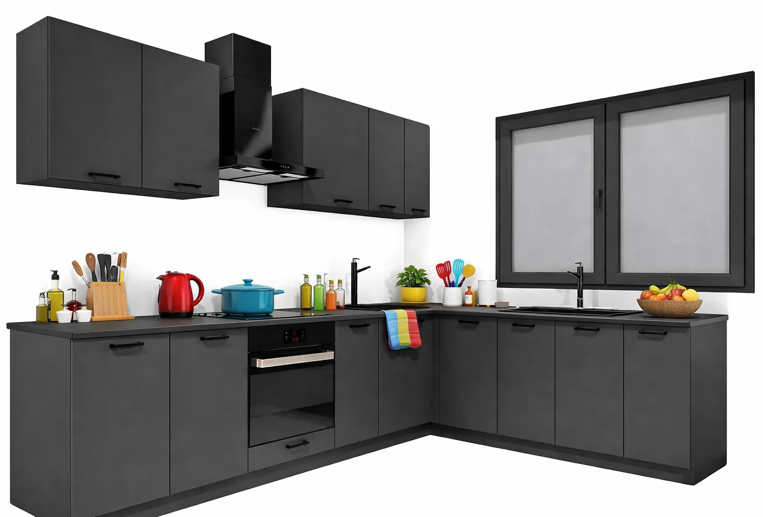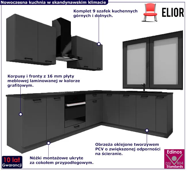Zestaw mebli kuchennych narożnych grafit 260 cm - Coleo 28X