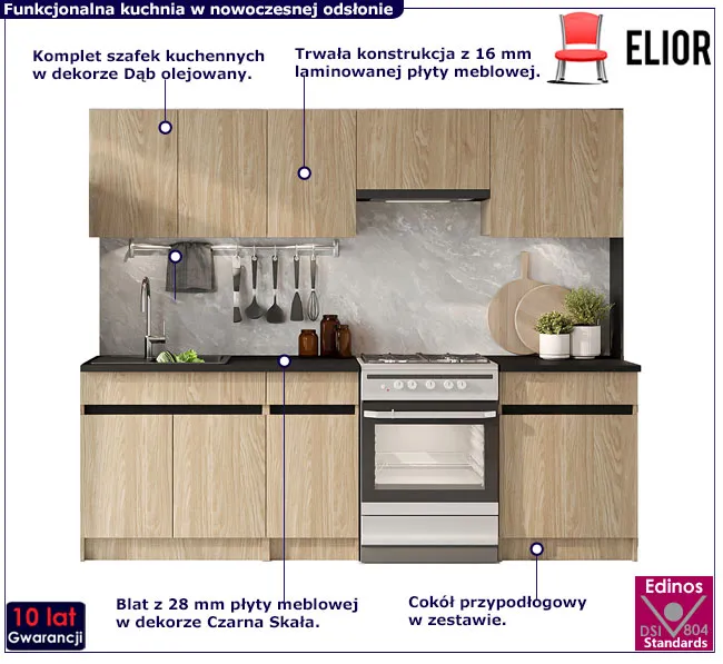 • Modny kolor: fronty: Dąb olejowany, blat: Czarna skała.